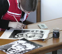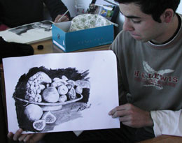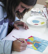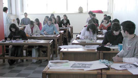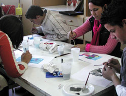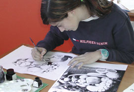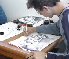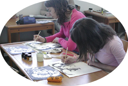 Artes. Vale a pena descer os 50 degraus que conduzem à novíssima SALA DE ARTES do Secundário! Aí, pudemos admirar a habilidade e os saberes dos “mestres” da Turma de Artes do 10º Ano, onde surgiam obras-primas, sob o olhar atento e animador da Prof.ª Nélia. Ficámos também a saber que está na forja uma viagem que será financiada com a venda de algumas obras realizadas e disponibilizadas pelos alunos: só não descobrimos (ainda) onde serão leiloadas as obras escolhidas, nem se o Clube de Inglês terá levado algumas para a Sotheby’s, de Londres, onde trabalhos menos perfeitos, mas de autores mais conhecidos, passam para colecções e museus por quantias superiores às que são pedidas pelos melhores jogadores de futebol! Na outra sala, a mais antiga, sob o olhar atento e encorajador da Prof.ª Rosalina, uma “cabeça rachada” era metamorfoseada, recriada, recomposta... pelas mãos dos alunos do 8º E, os quais, como demiurgos de Apolo em absorta contemplação, viam surgir pela magia das cores sabiamente combinadas dezenas de novas formas do primitivo elemento inspirador. Na página seguinte registam-se alguns momentos dessa “normalíssima” manhã de trabalho!