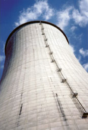 admirados com o tamanho gigantesco das torres de evaporação e da chaminé e