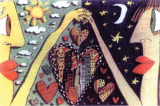 Ao encarar a imagem pela primeira vez, fez-me lembrar de imediato uma música de Rui Veloso – “O teu lado lunar”. Por vezes, temos a sensação de que as pessoas que nos rodeiam, ou mesmo nós próprios, possuímos dois lados, duas faces… E perante situações diferentes, estas faces apresentam-se como sendo completamente distintas, como a noite do dia, e tão distantes como duas cidades em pólos opostos. Contudo, apesar de nos sentirmos confusos e divididos, não deixamos de ser uma única pessoa, pelo que no mais fundo e mais íntimo de nós mesmos existe sempre um ponto comum a estes dois lados, simbolizado pelo contacto das mãos na imagem.