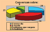 No final da reunião, os pais e encarregados de educação preencheram um breve questionário sobre o relacionamento que têm com os filhos. De toda a informação obtida e da qual, em parte, se dá conta nos gráficos em anexo, gostaria de sublinhar o comentário escrito de uma mãe, que nos transmitiu o seguinte: ACHO IMPORTANTE FAZER MAIS REUNIÕES DESTAS, PARA FALAR SOBRE TODOS OS ASSUNTOS. EU ESTAREI SEMPRE PRESENTE